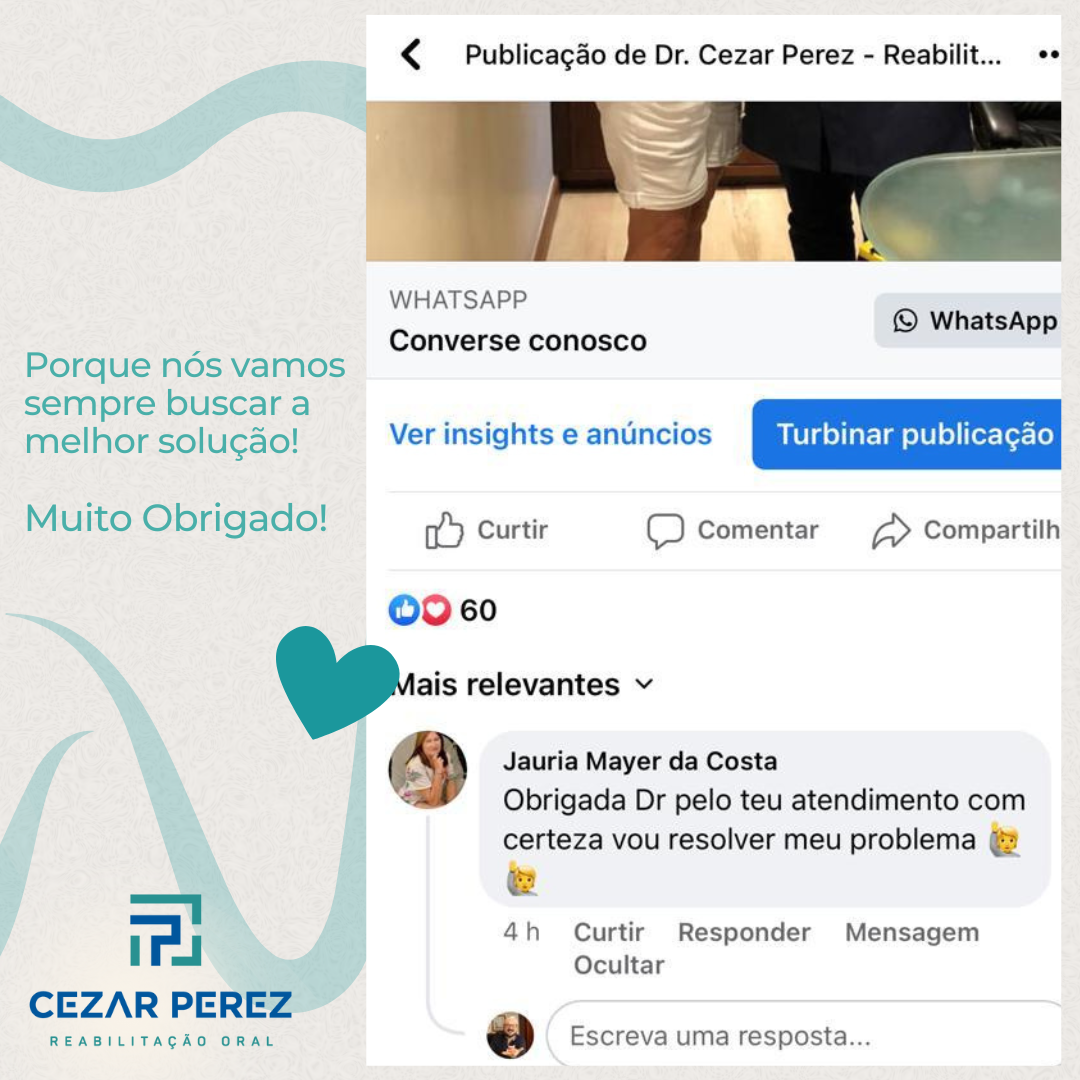 Conexões via Redes Sociais: Alguns dos serviços da Cezar Perez Reabilitação Oral podem incluir funcionalidades de redes sociais, como botões e widgets de “Curtir” do Facebook; botão “Compartilhar” e miniprogramas interativos.