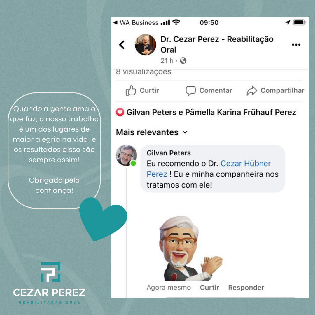 Conexões via Redes Sociais: Alguns dos serviços da Cezar Perez Reabilitação Oral podem incluir funcionalidades de redes sociais, como botões e widgets de “Curtir” do Facebook; botão “Compartilhar” e miniprogramas interativos.